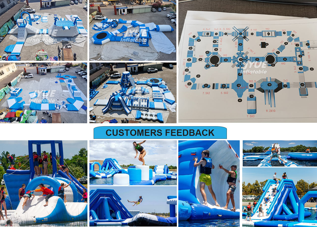 Inflatable Floating Water Park The inflatable waterpark is an amusement Aquapark that features water play areas, it is made up of such as inflatable slides, water slides, water trampoline, water totter, water action tower and other water games.
