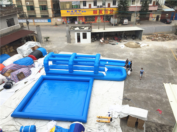 The kid inflatable water slide is made from Dura-Tech and PVC plastic material,It's colored with bold summer colors,dual inflatable water slides.