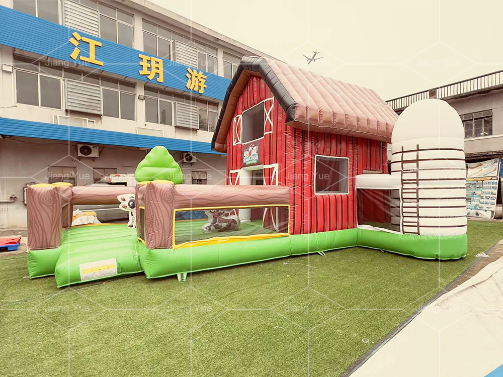 Commercial Outdoor Cow House Inflatable Jumping Castle With Slide For Kids