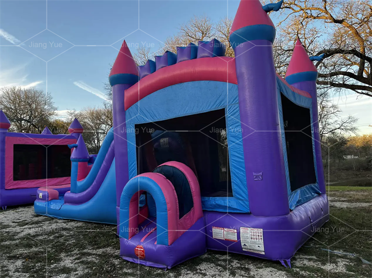 An inflatable bounce house combo is a perfect addition to any backyard party or family event. Combining all the fun of a traditional bounce house with an attached slide, our combos are guaranteed to be a hit at your next event! Our PINK castle combo is suitable for children of all ages and can accommodate up to 6-12 riders at once. Constructed out of commercial grade 15oz PVC vinyl, this combo is engineered for both fun and safety. This purple and pink bounce house with an attached 6-foot wet/dry slide is straight out of a fairytale and is sure to transform your ordinary event into one fit for any FUN!
