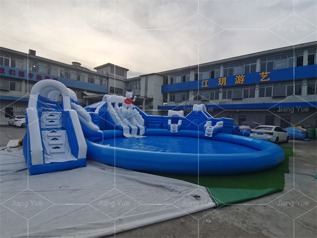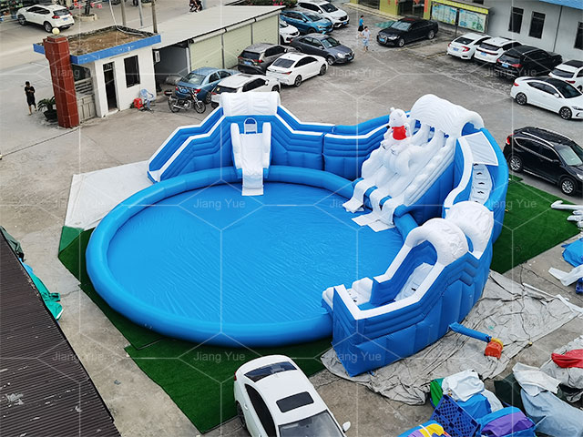 It is a water park, which is made of PVC material. There are 3 slide and a big pool to consist of,and the color can be customed according to the requirements of customer.It is suitable for family,school and so on.The purpose of the product is to exercise body and to add interest.